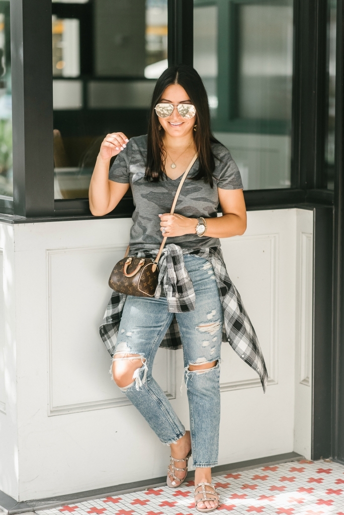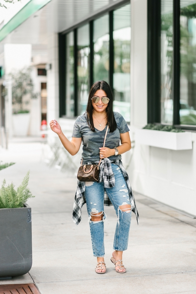 Top – small | Flannel – small | Jeans – 2 short | Sandals – down half | Necklace | Bracelet | Sunglasses