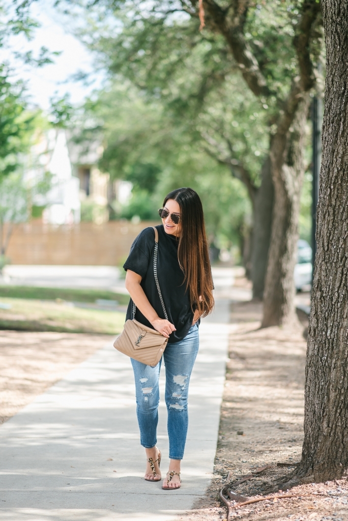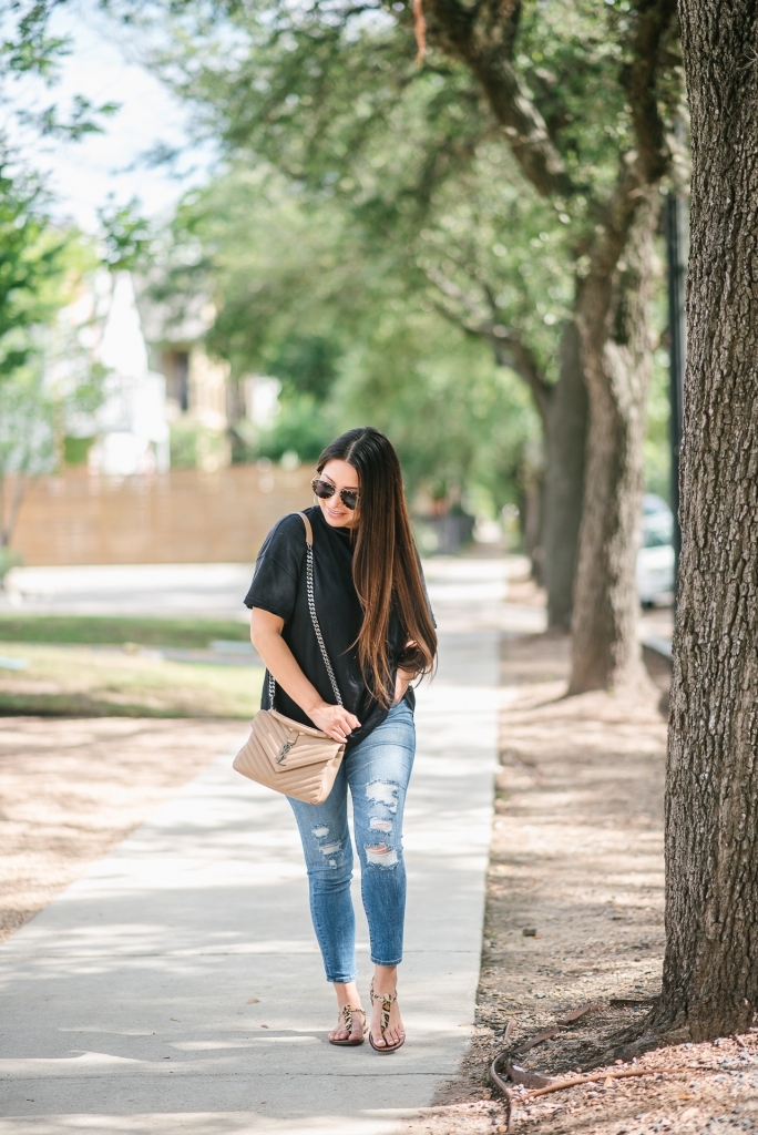 You can NEVER have too many cute tees. I feel like I am always buying and trying new tees because they are just so basic in your wardrobe. I get asked all the time about basic cute tees and what I recommend. So, I wanted to share 10 tees I am loving right now. I will admit, my recommendations change from time to time but I thought I’d share my current favorite basic tees. Scroll all the way down to see my top 10 favorite basic cute tees right now. This black distressed one is a current favorite. I have it in two colors and could see ordering more. The weight of the fabric is so nice and I love the distressed detail. It’s different but still wearable. More favorites down below, so keep reading!