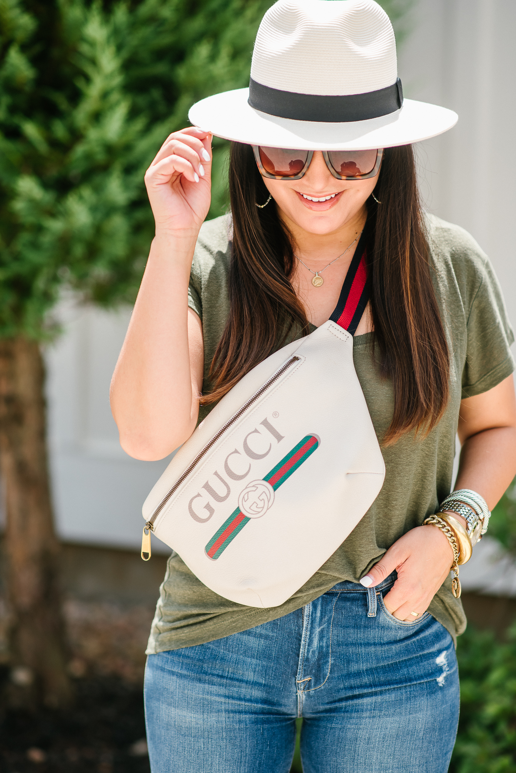I fell hard for the Gucci Belt Bag, so much so that I ended up ordering this bumbag too. I love how practical this bag style is, whether you buy a luxury version or not. It also instantly makes your outfit look that much cooler. This style can dress down a casual look or make a super causal look way more stylish. Check out some other bumbag options below.