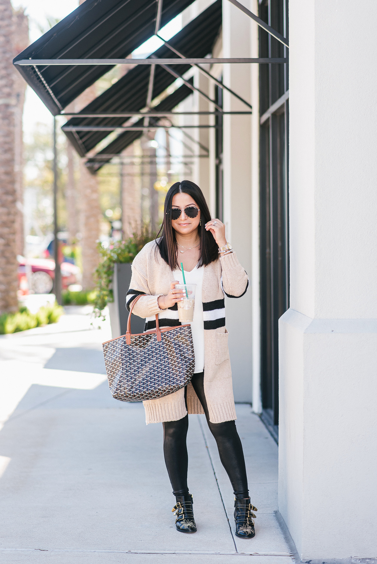 This might be one of my favorite fall looks from last year. It’s casual, comfortable but also polished. A great blazer will do that to an outfit. I also love that this palette is so simple with the subtle stripes peaking out from underneath the blazer.