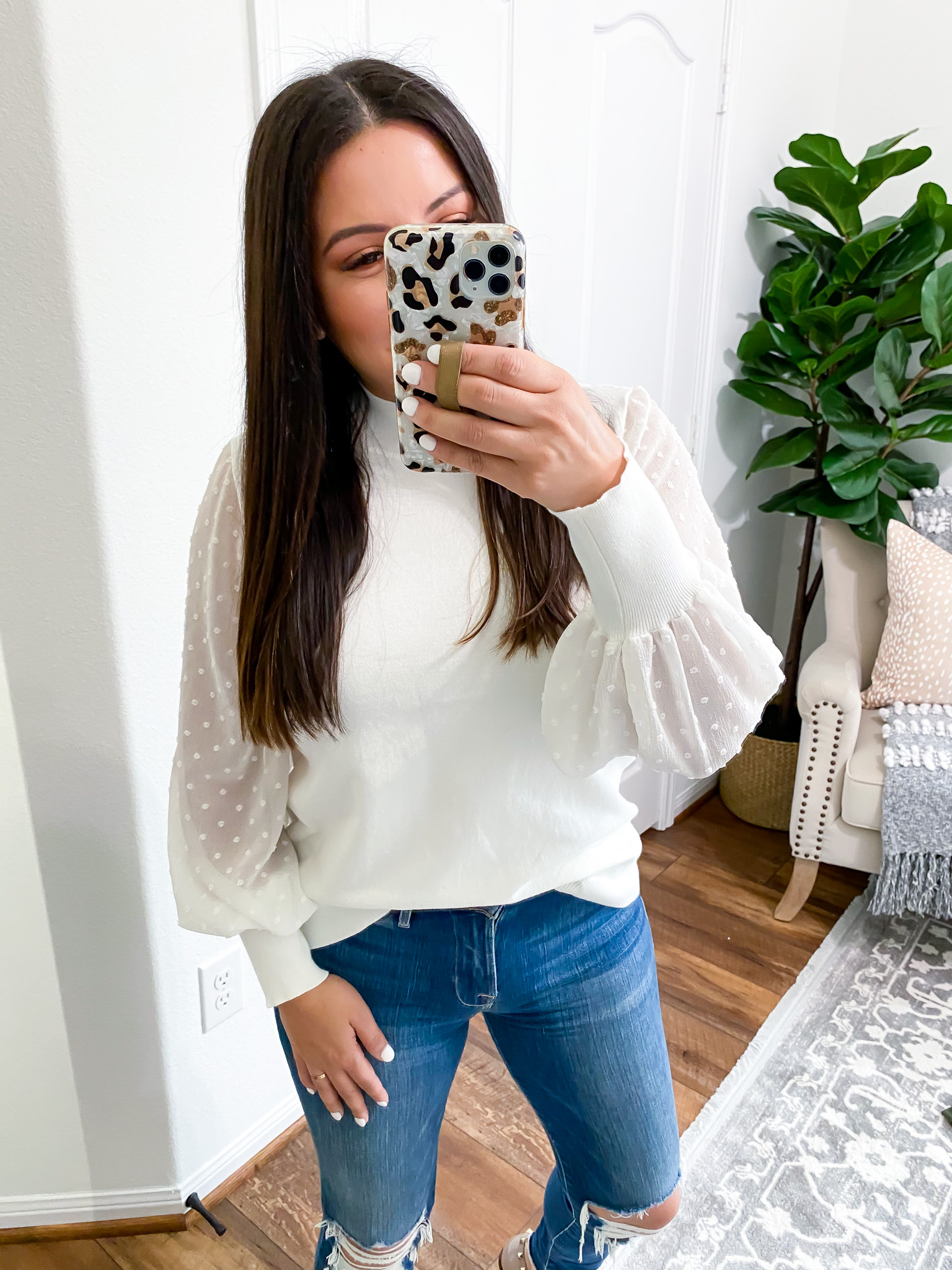 Happy Thanksgiving!! I hope y’all are all enjoying some yummy food and taking advantage of all the sales. I put together a little haul of some new tops that I recently ordered from Nordstrom and wanted to share them with you. Nordstrom is having some amazing Black Friday Sales too, make sure to check them all out here. I also ordered this sweater because it looked so soft. This sweater, because I loved the sleeve detail and this sweater because the polka dot detail was too cute.