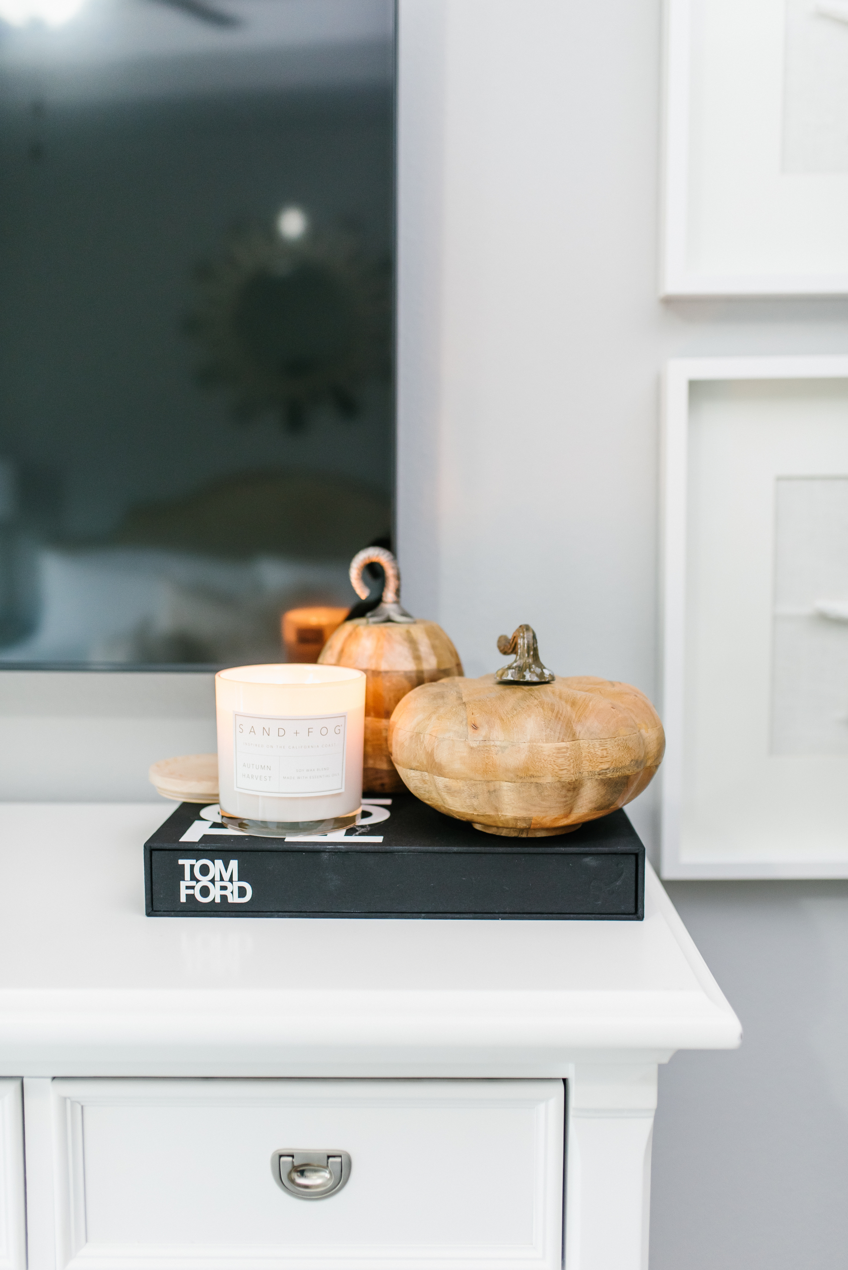Pumpkin Spice and everything nice!! Who’s ready for fall or specifically some affordable fall decor?! I’ve partnered with tjmaxx.com to share some affordable fall finds. I’m slowly adding a Fall touch all over my home and I thought I’d start with our bedroom first. I was going for subtle fall details since this is a heavily lived in room. When it comes to seasonal decor I prefer a classic look and I think it turned out perfect!! These wood pumpkins were my favorite find. They look so expensive and add an elegant look to the space while still be on trend for the season. I also loved the quality of this throw pillow, I will be ordering another one for our sitting area that we didn’t get a shot of. We currently have a settee in that area and it’s screaming for some good accessories. Make sure to check out tjmaxx.com for all your affordable fall decor!
