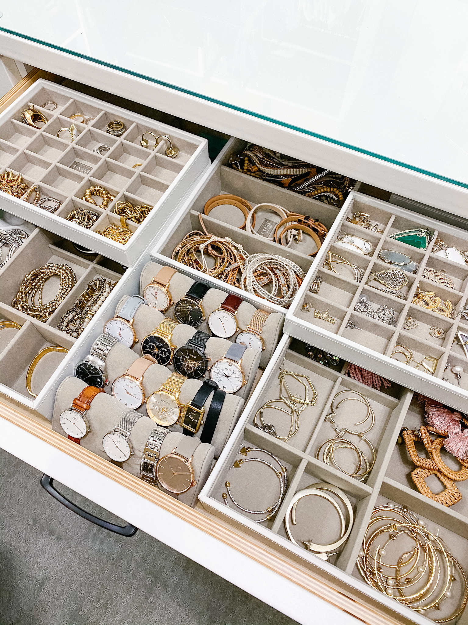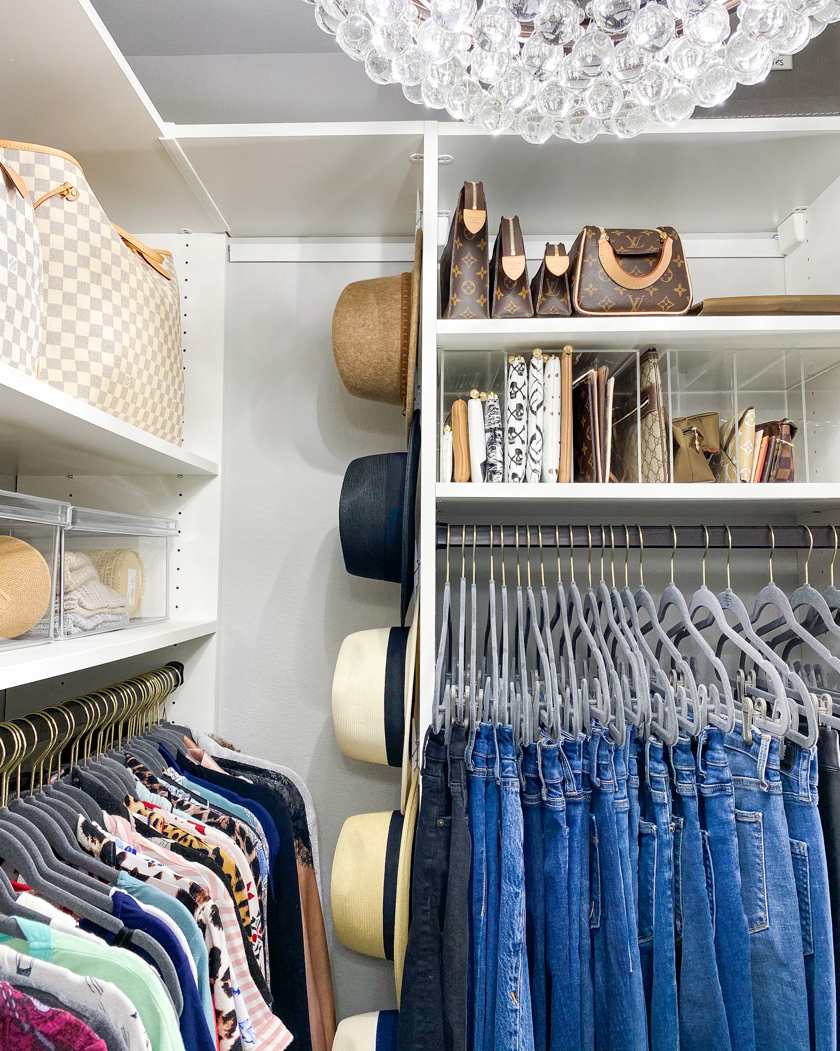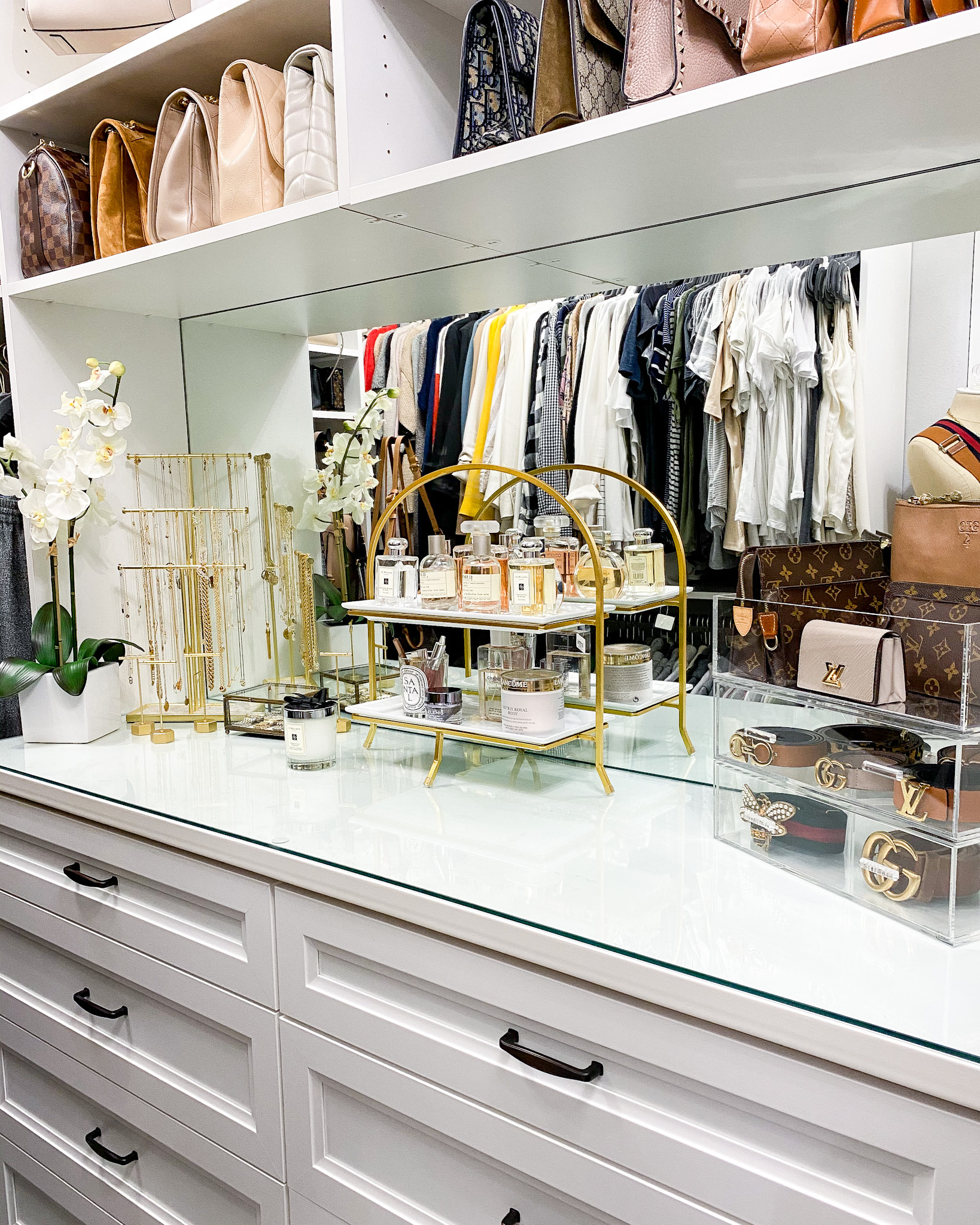 You know how much I love to organize my home but my favorite is definitely closet organization. I get asked daily about what I use to organize this space so I thought I’d put together a post to share it all. I love using acrylic pieces for a clean look but also so I can see all my items. I truly believe when it comes to shoes, handbags and accessories if you can’t see it you will forget you own it. With that said having some solid boxes are a must have to for other items needing to be stored in your closet. If you want more details make sure to check out my YouTube channel, I have several videos talking about my closet organization.