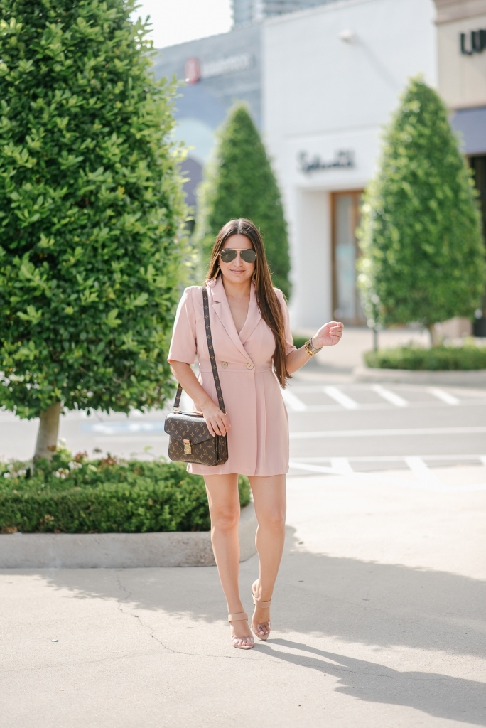 I wore this romper to the RewardStyle conference a few months back and since it’s still in stock I had to share it here on the blog. It’s a little unexpected and the cutest pink romper I’ve found in a while. When I think of rompers they are usually super casual and I love how polished and chic this one is. Who knew a pink romper could be dressy enough for the office. I love that you can totally dress it down too. Also, I’ve had a lot of people ask about these shoes. They are kind of everything. I will admit, they do get a little uncomfortable after a little while but I still love them.