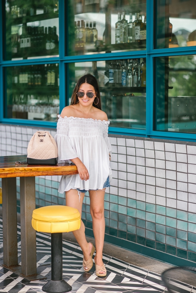I found the cutest smocked top I ever did see and I just had to share it with you guys. How cute is it with my NEW BACKPACK and cut-offs…I am obsessed. I have a feeling this backpack will be a new favorite. It’s so easy to get in and out of and because it’s two-tone it goes with practically everything. Check out the unboxing for more details here. If this outfit doesn’t remind you of Summer, I don’t know what will…lol. Also, these shoes have sold out, but here are a similar pair that I will also be ordering.