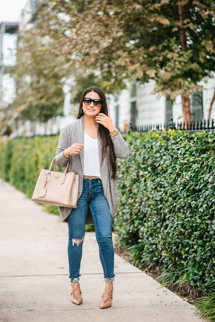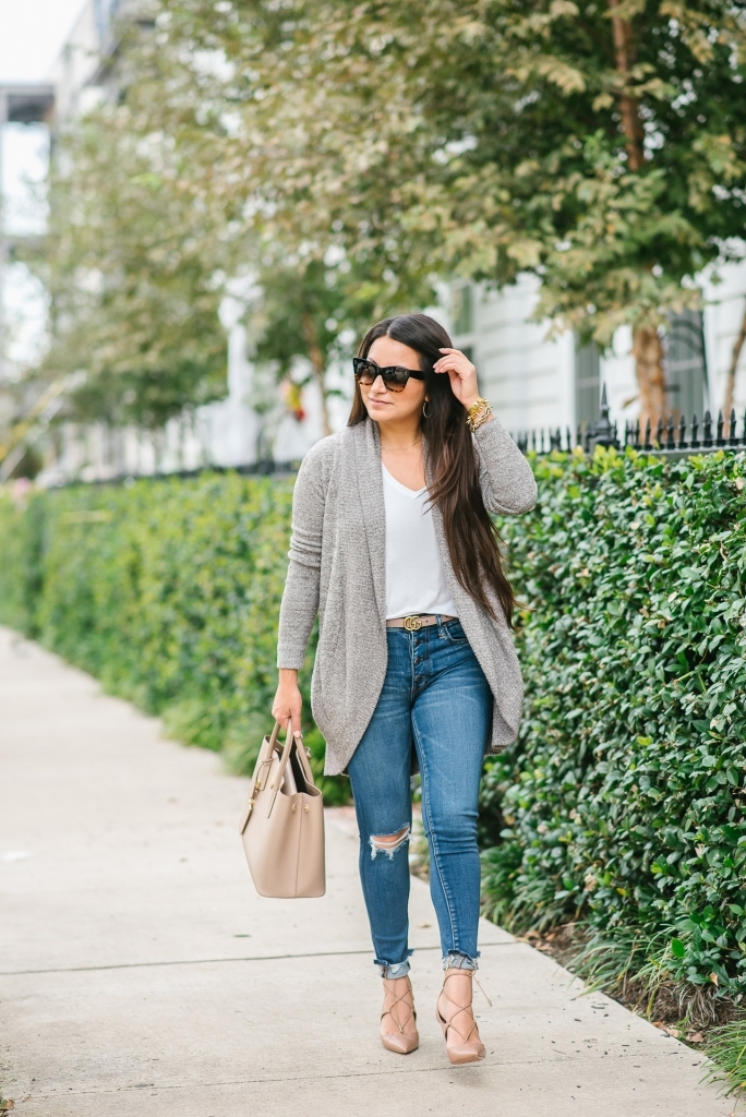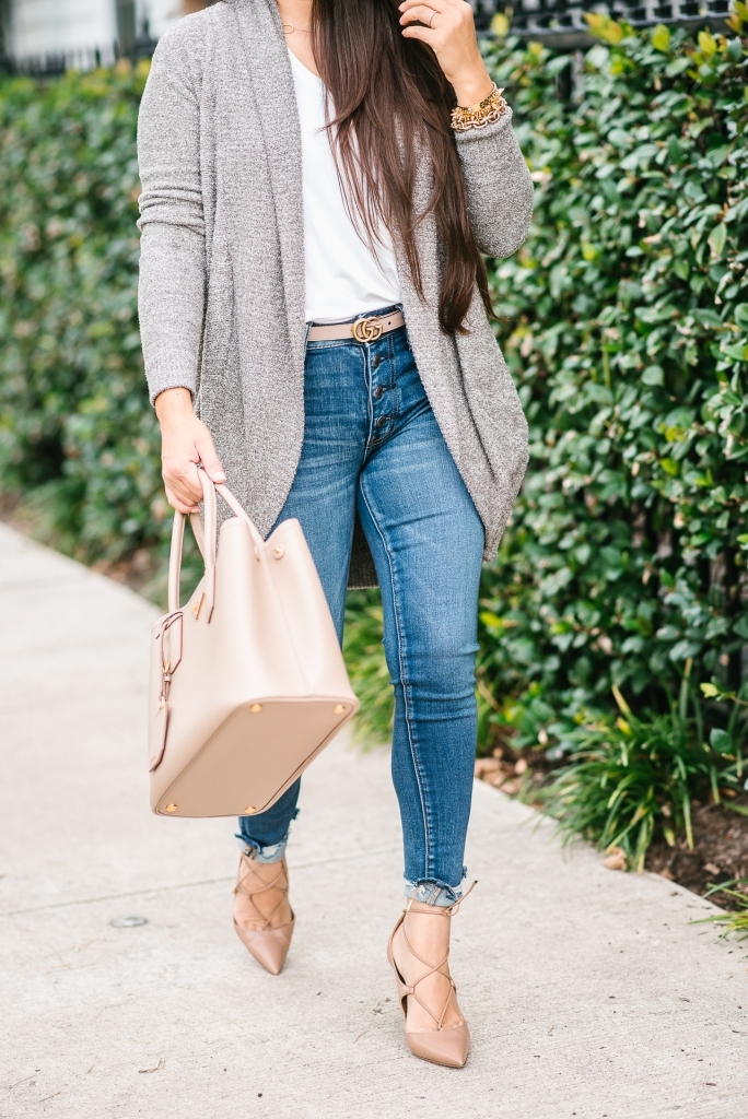 The weather has been amazing lately, which means I get to pull out my go-to fall look. This cardigan is still a favorite of mine. I want to get at least one more color. I love how it can be dressed up or down, but still be put together. I know it’s a little on the pricey side, but it’s worth it…I promise. It’s one of the softest materials I’ve ever worn. So much so, I ended up buying this robe too and I am obsessed!