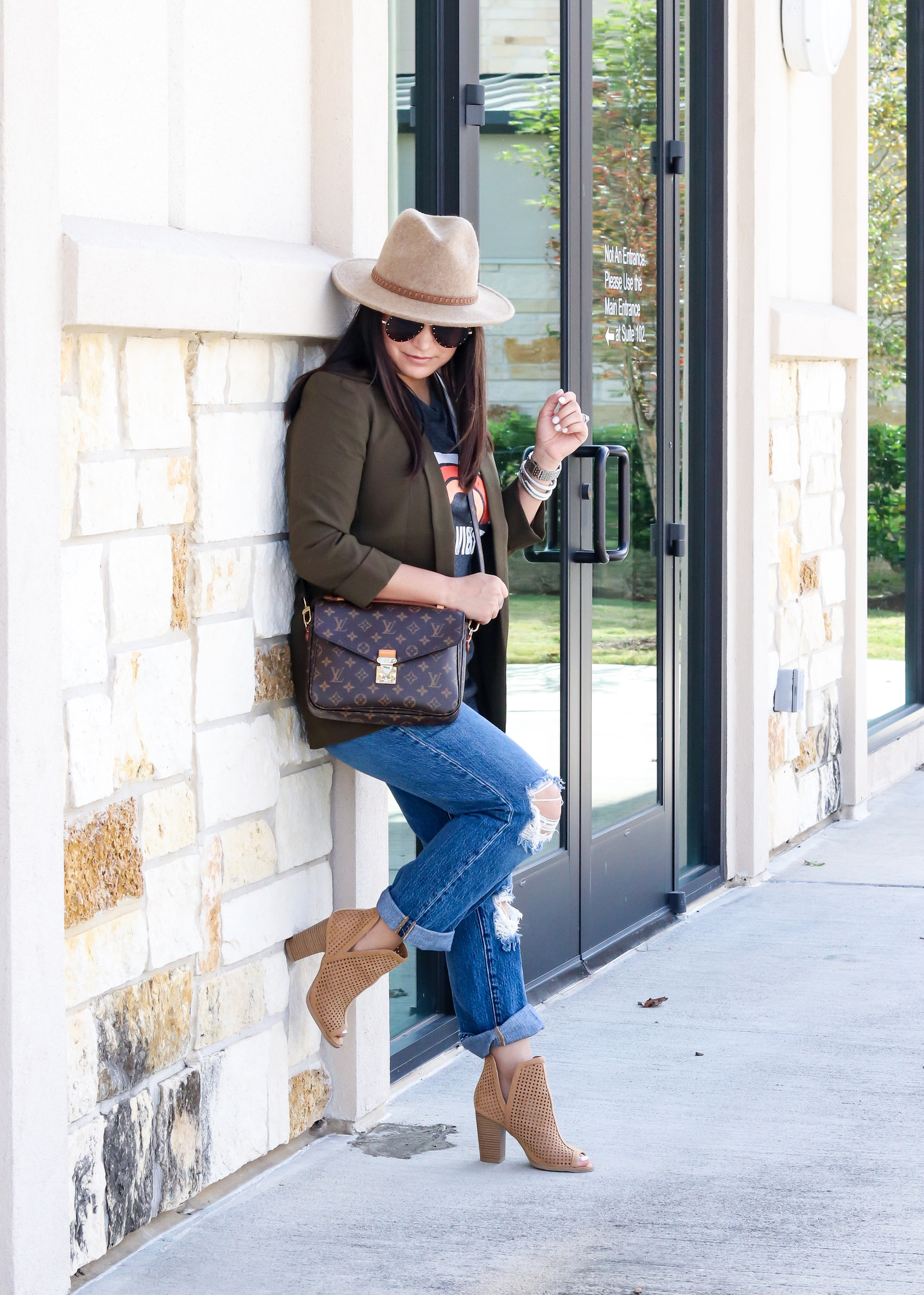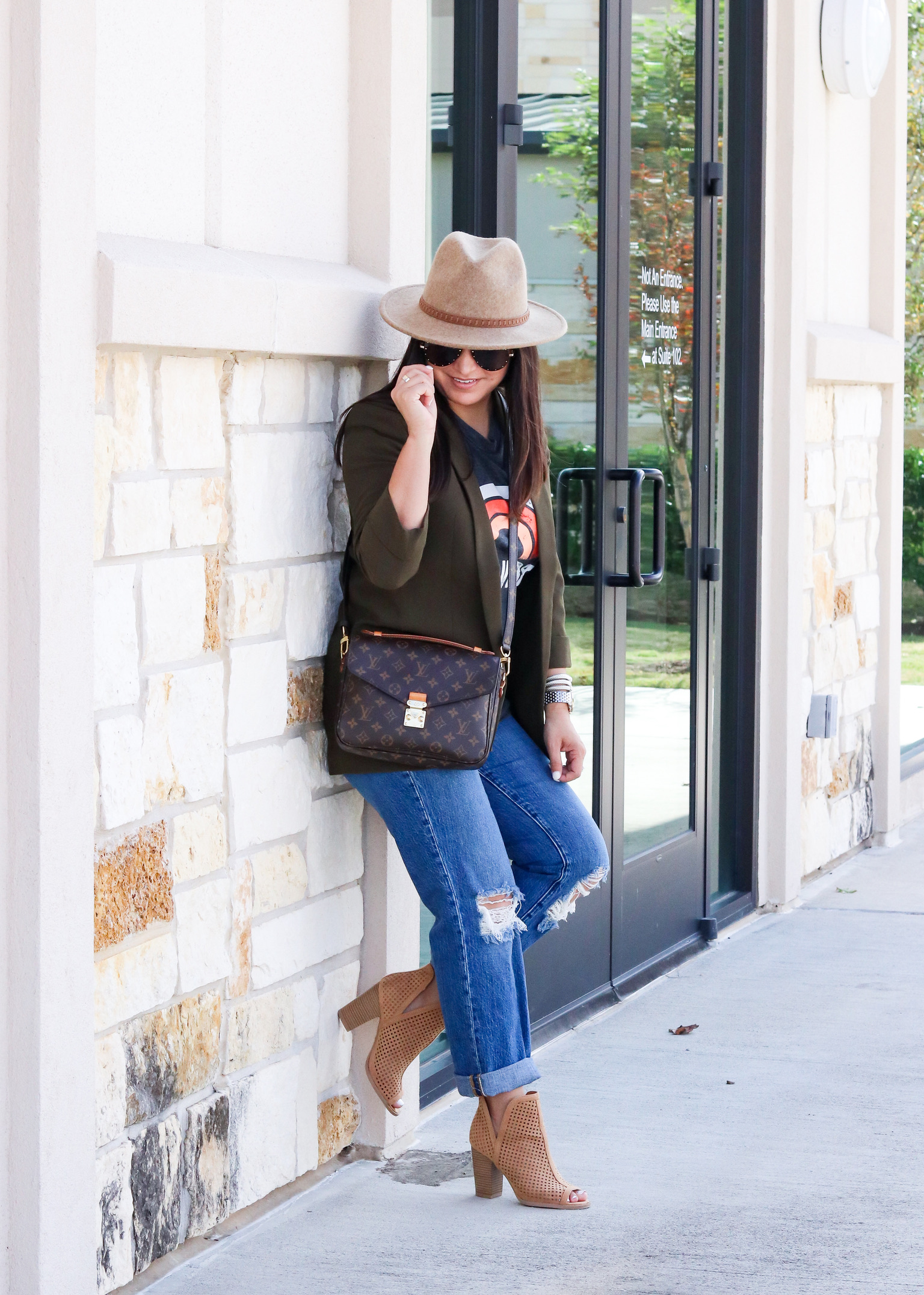 Tank – medium | Blazer – small | Jeans – 2 | Booties – Venus(similar here) | Bracelets | Watch | Sunglasses | Hat | Handbag