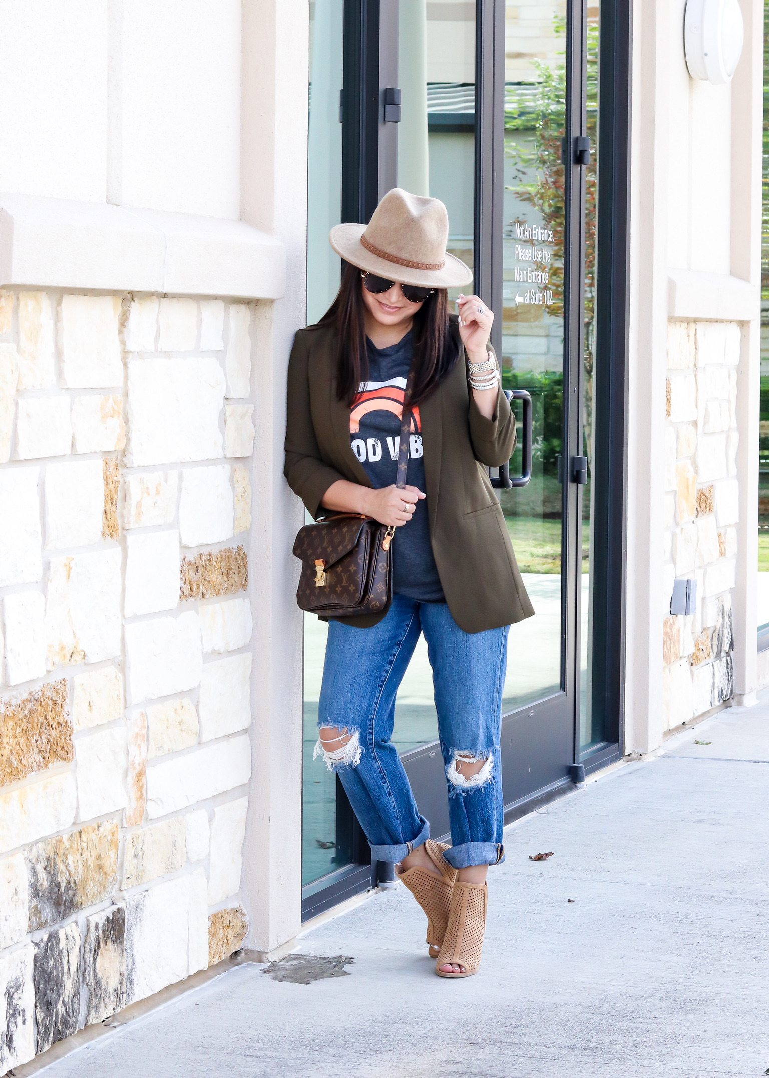 I am loving this graphic tee and blazer combo. The blazer just adds a little something to this outfit. It just works, don’t you think?! These jeans have become a go to for me. They are not something I’ve gravitated towards in the past but I am glad I gave them a try, cause I love them. There isn’t a lot of stretch because they are a mom fit, but they do run tts. This blazer has been getting a lot of wear too. The boyfriend fit makes it super versatile and it comes in pink!!