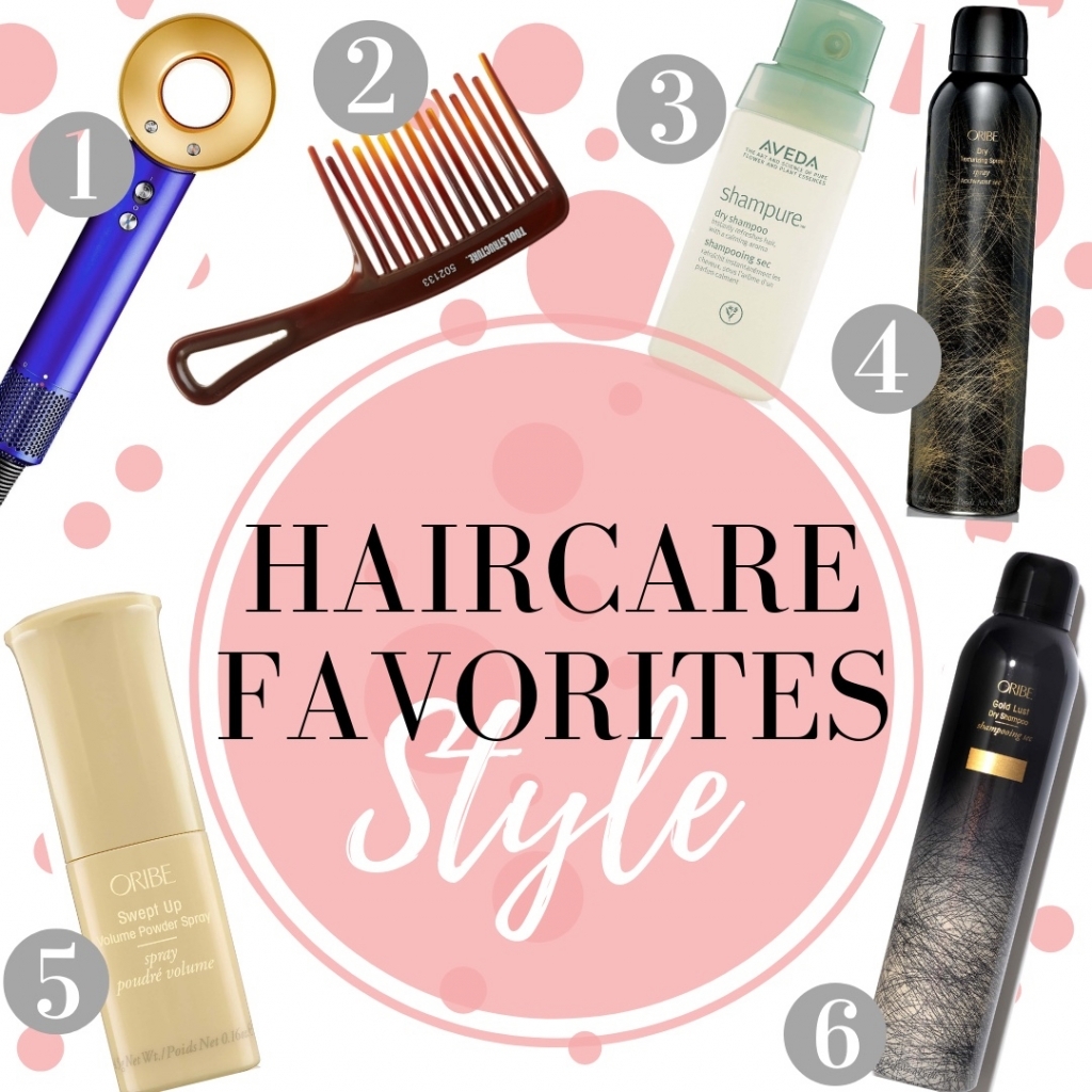We can’t have a hair care favorites without mentioning my newest gadget, #1. This blowdryer is seriously amazing. Yes, it’s a total splurge but I love it. It cut down on drying time, my hair isn’t as frizzy after a blowout and it feels so smooth after(that’s without products). Another must for me is a wide tooth comb, #2. It cuts down on breakage, especially when combing wet hair. If you’re looking for a heavy duty dry shampoo, this one(#3) does the trick. It works on my worst hair days. If you’re looking for more of a lightweight dry shampoo #4, this one is a good one. Pricey, yes, but it works without the heavy feeling on the scalp. When it comes to adding texture, #5 and #6 are my go to. I don’t use them together but they both do a great job creating volume and texture. #5 is great for up-do, shorter styles and more concentrated volume areas. #6 is great for all around texture throughout. I love and use both.