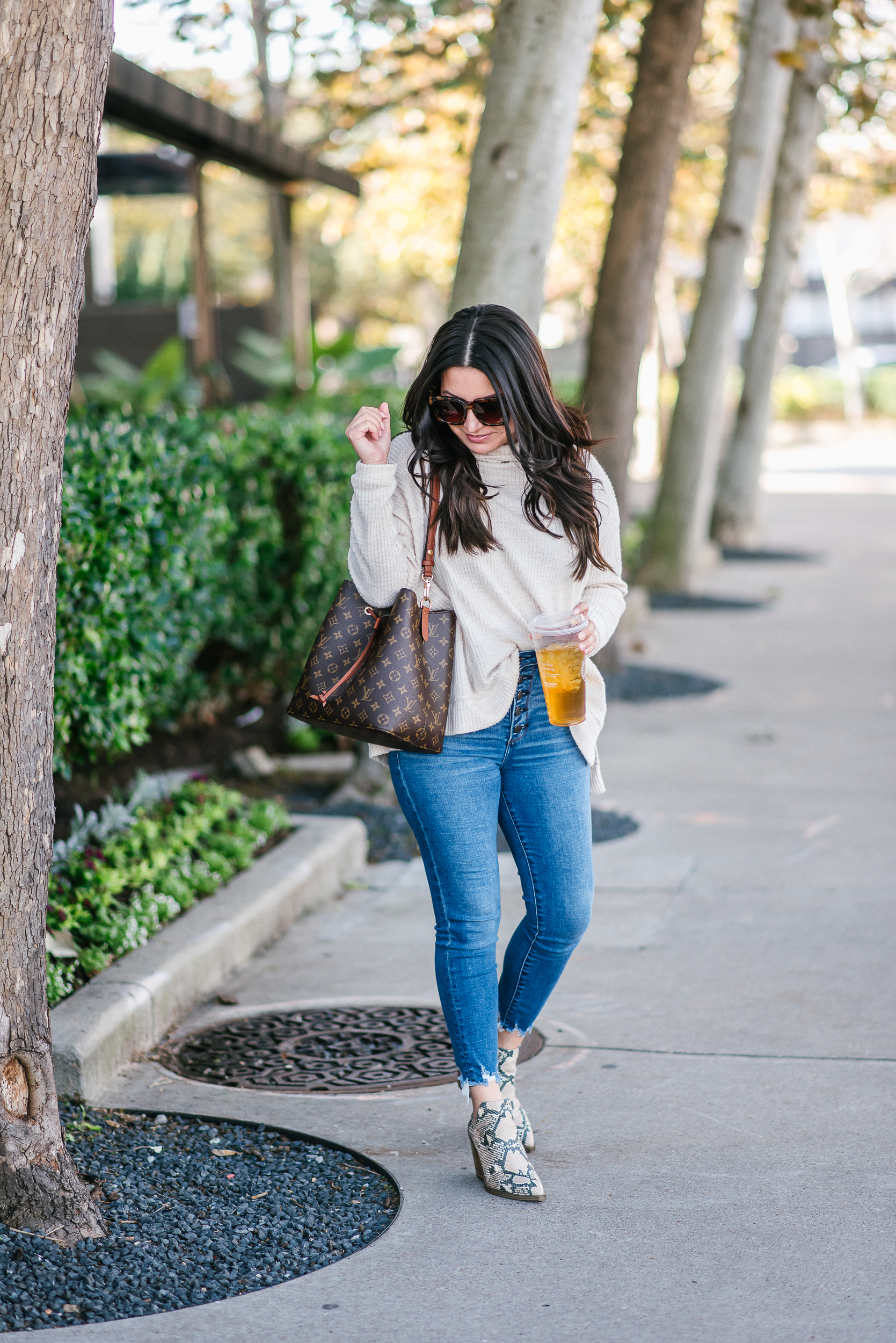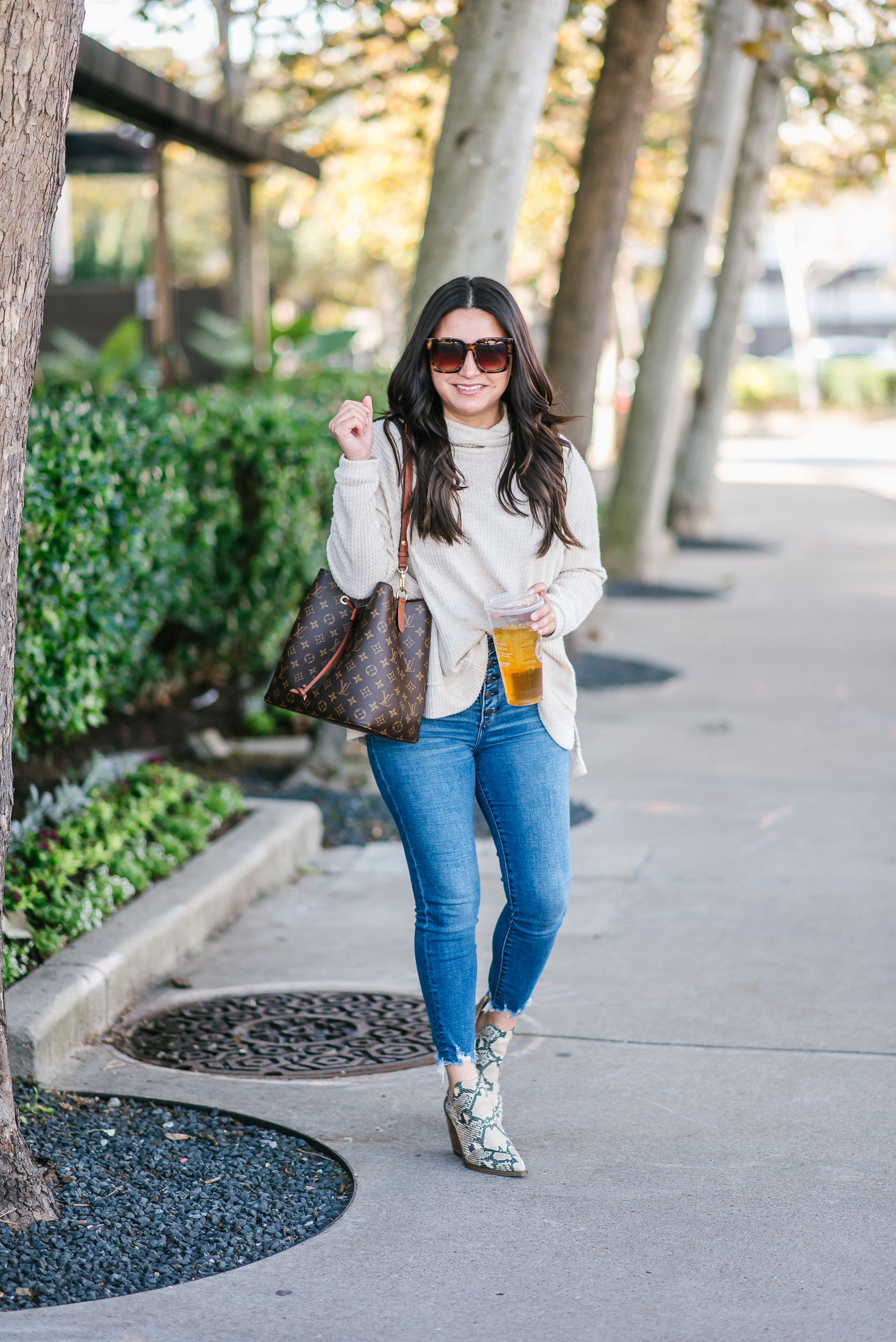 On another note, I had to mention this lightweight sweater. It runs big, so I went with the small. It’s perfect styled with jeans but it’s also long enough to be worn with leggings. See it styled with leggings here. I also love me some snake print boots, if you haven’t snagged a pair they are so much fun. I linked a few options below in the widget. Mine are selling out fast. Also, if you are looking for an affordable pair of sunglasses these are still a favorite. They are under $15 and one of my favorite Amazon finds. I have 4 pairs!! Yes, they are that good!