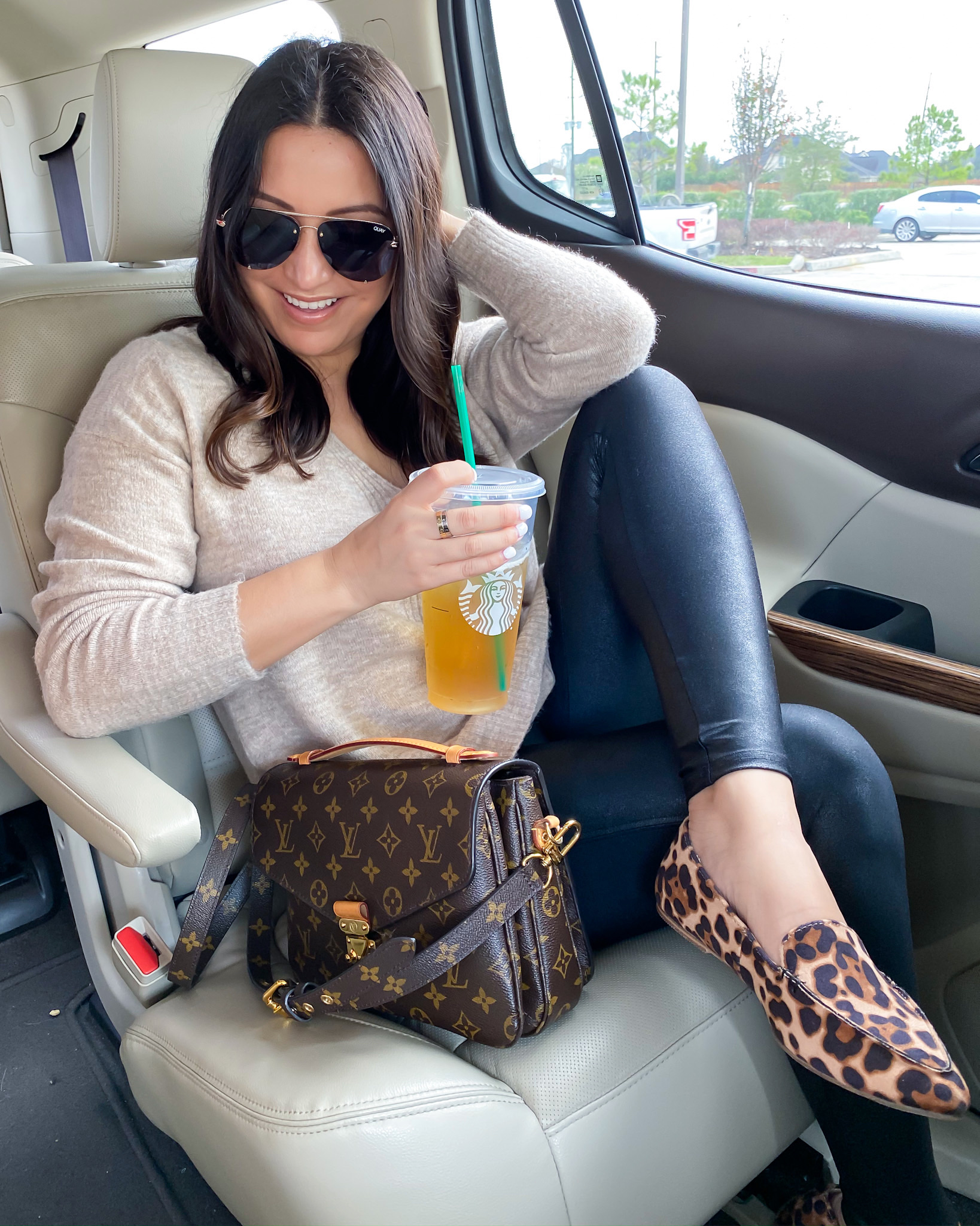 Similar Sweater | Leggings – S Petite | Shoes – TTS | Sunglasses | Rings | Handbag