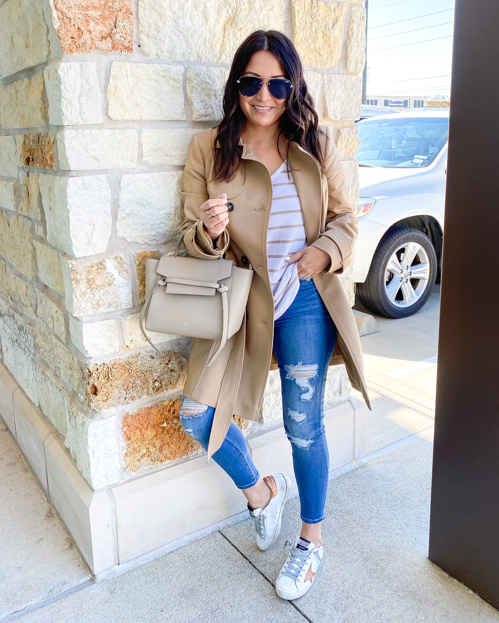 Trench Coat – S | Top – S | Similar Jeans | Similar Shoes | Sunglasses |Rings | Handbag