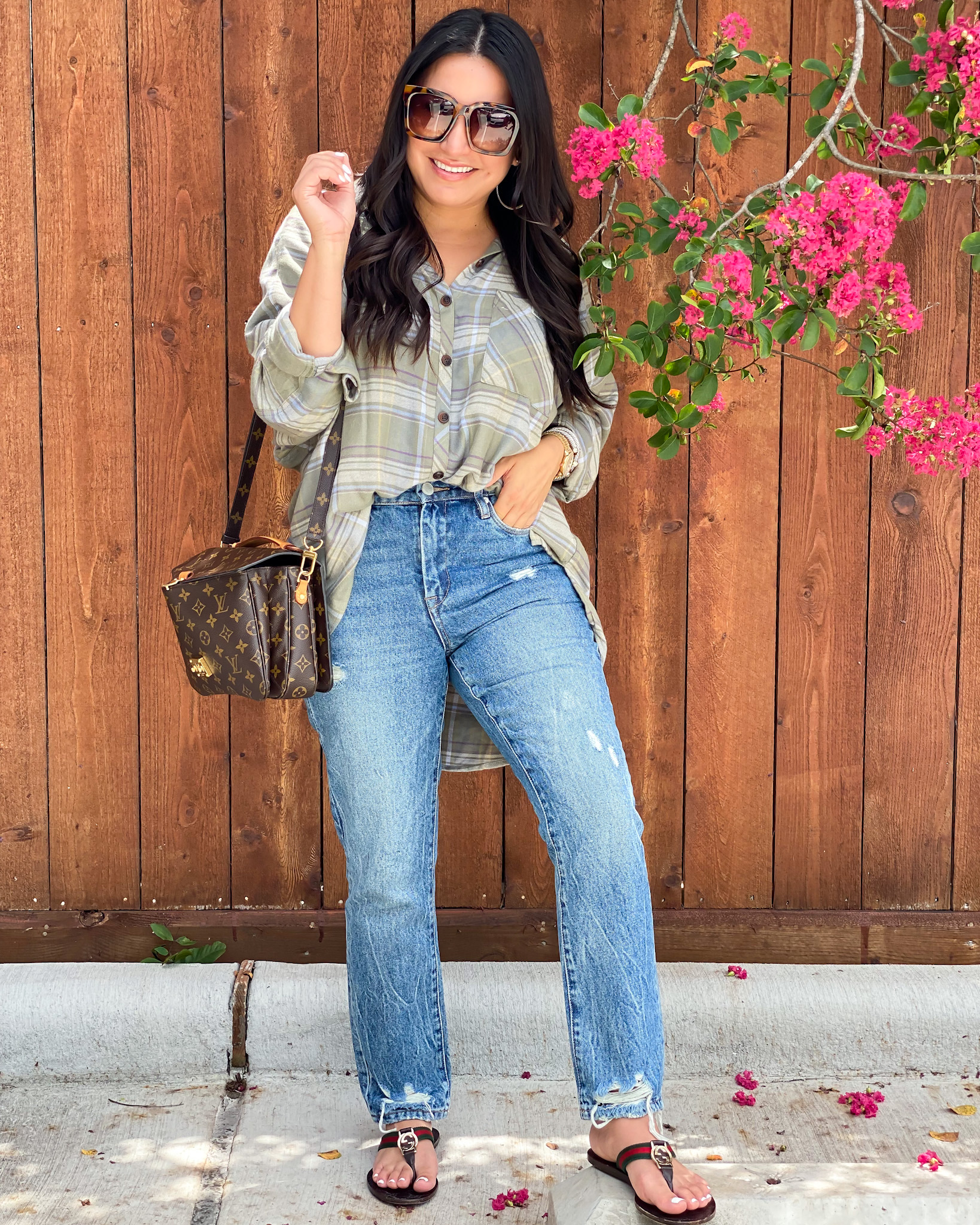 Top | Jeans | Sandals | Earrings | Bracelets | Sunglasses | Handbag