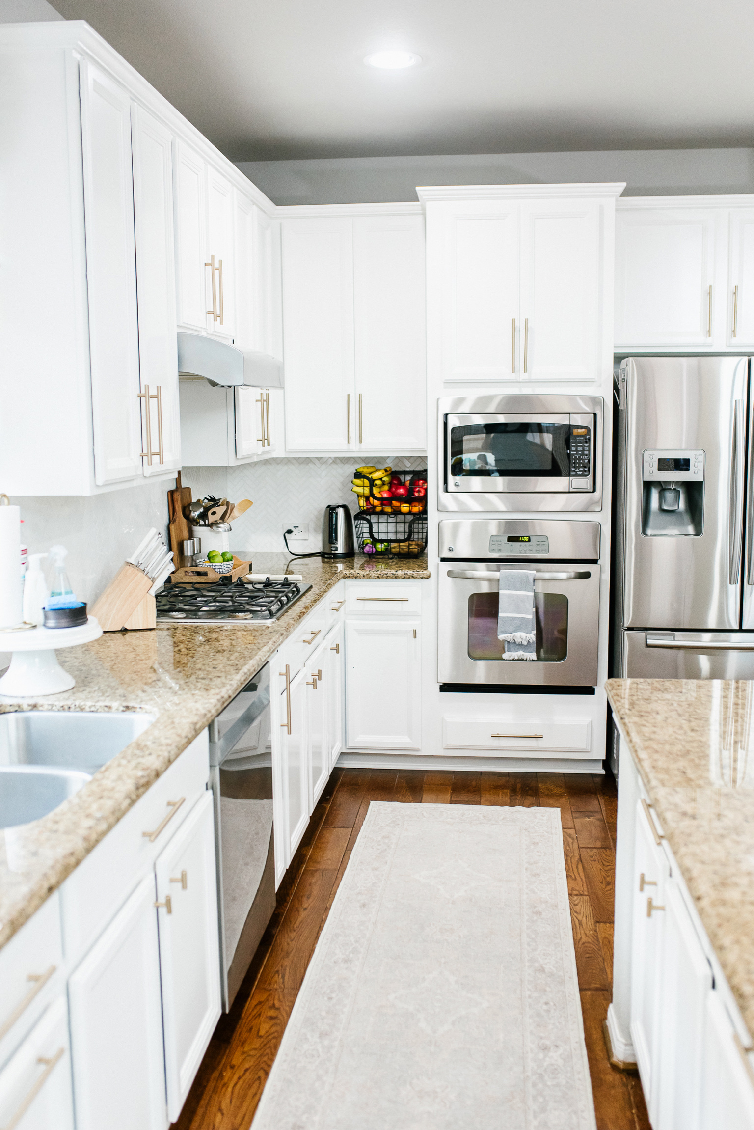 I’ve had so many requests to do a kitchen tour with all the kitchen details after the changes. First, I just have to say, this wasn’t a full remodel. It was more of a little touch up. We made just a few changes and the difference made just enough of an impact. Second, yes I know, the kitchen would look way better if we changed out the granite but I didn’t want to put that investment into this house.