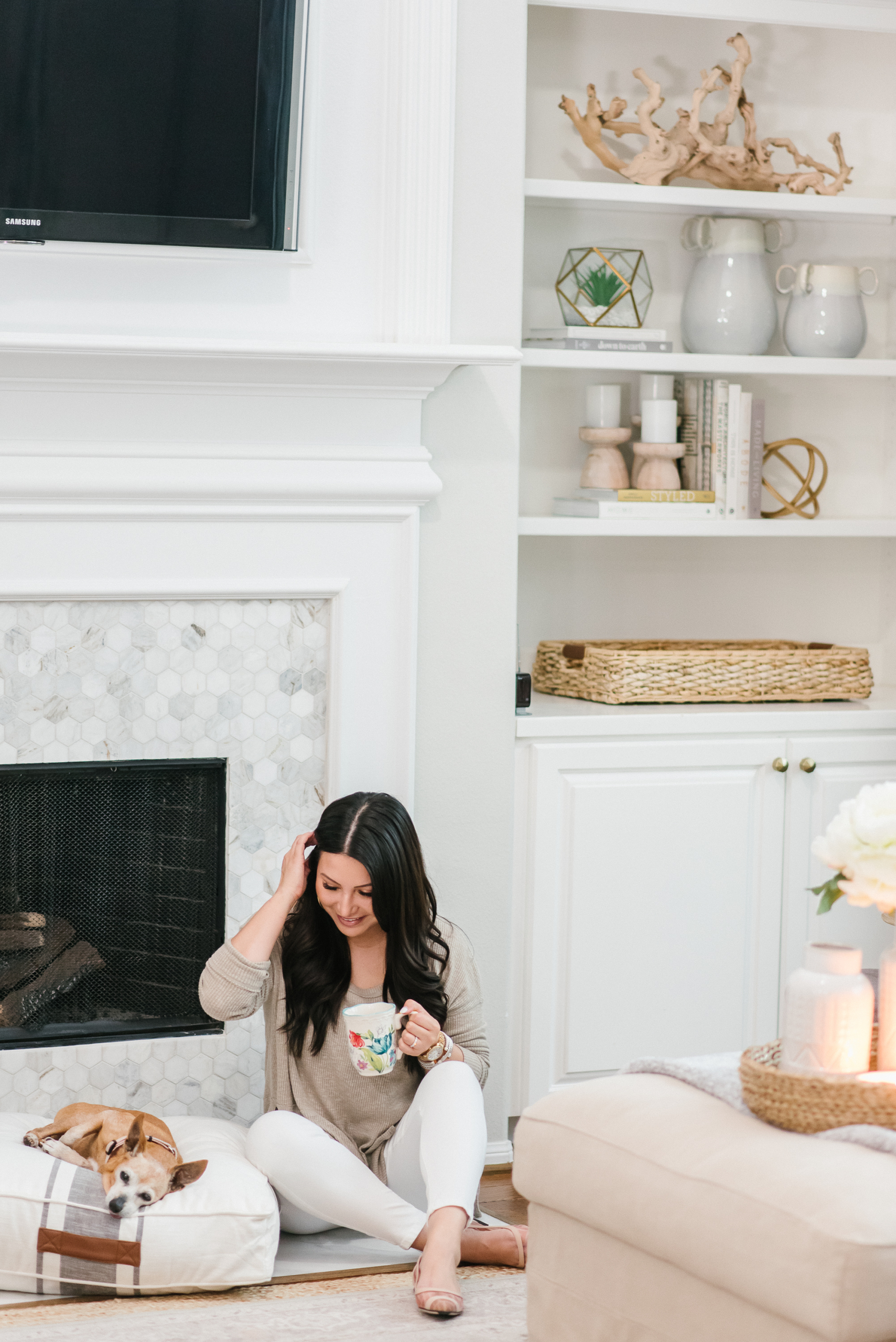 When it came time to adding the finishing touches and accessories throughout the room I knew exactly where to go. Walmart’s Spring Home collection had all the pieces to finish off this space. I found the cutest pillows, throw blankets and lots of decor for under $15! These floor lamps were one of my favorite finds and I had to snag this floor pillow aka dog bed now!!. It seriously makes the perfect pet bed, the fur-babies love it.