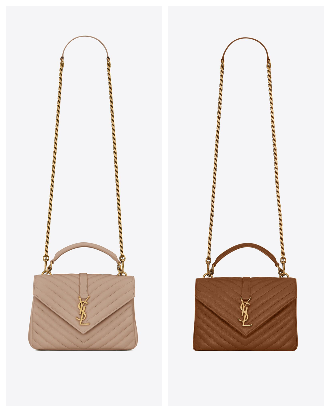 I’ve been saying for a while I needed to add another YSL college to my collection, I sold the one I had. I want one with gold hardware and these are the two I have been looking at. I love both colors and I know I have so many in that color family but that’s what I like. It’s what I gravitate towards and I love having options in functionality, size and color range. Do you prefer the lighter or darker color?