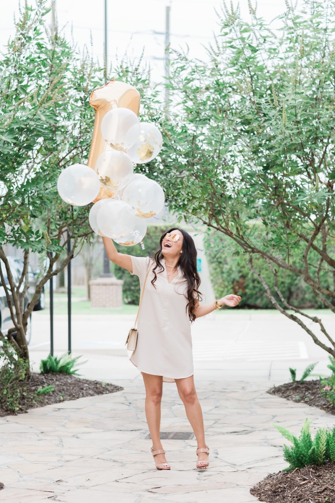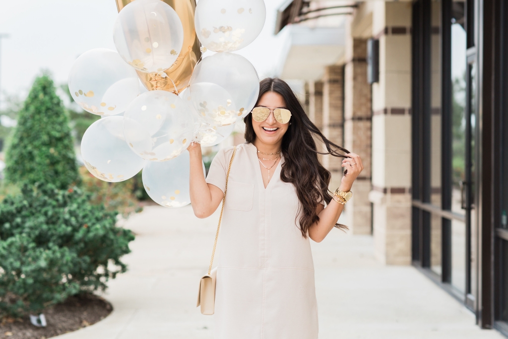 Dress – XS | Necklace | Sunglasses | 1 Balloon | Confetti Balloons | Shoes – Louboutin – similar here | Bag