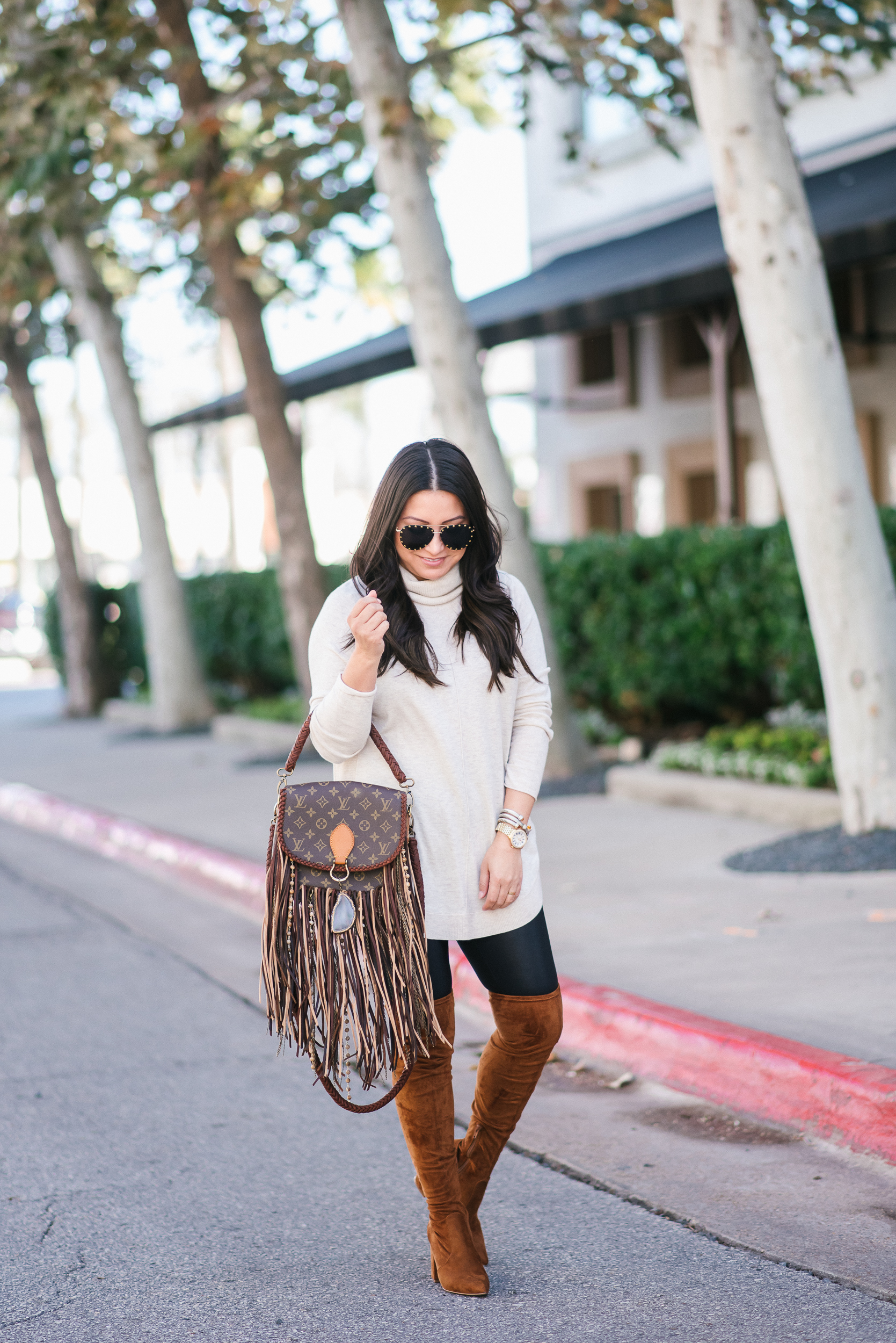 I’ve been dying to wear these over the knee boots. I didn’t get out as much as normal this season but I still had to style them and share. They are so much fun and actually really comfortable. I ended up going up half a size and they fit great. This color is perfect too. I feel like they can be worn any other color. It’s the perfect neutral.