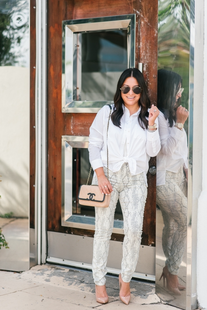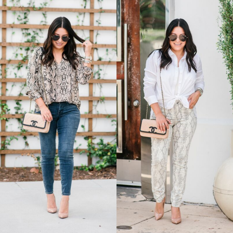 Did you get the memo, snake print is HOT this season. So, I thought it would be fun to show 2 different ways to style it. Where do you like your snake print…..top or bottom? I honestly was so certain that I was going to love it only on top but I am living for these snake print pants y’all. The fit on these jeans is so good and they come in petite..woohoo! I was so excited to partner with NYDJ and Nordstrom for today’s post. They have some online exclusive pieces available at Nordstrom now here. Nordstrom always has the best selection and with all their online exclusives from NYDJ you have got to check them out.