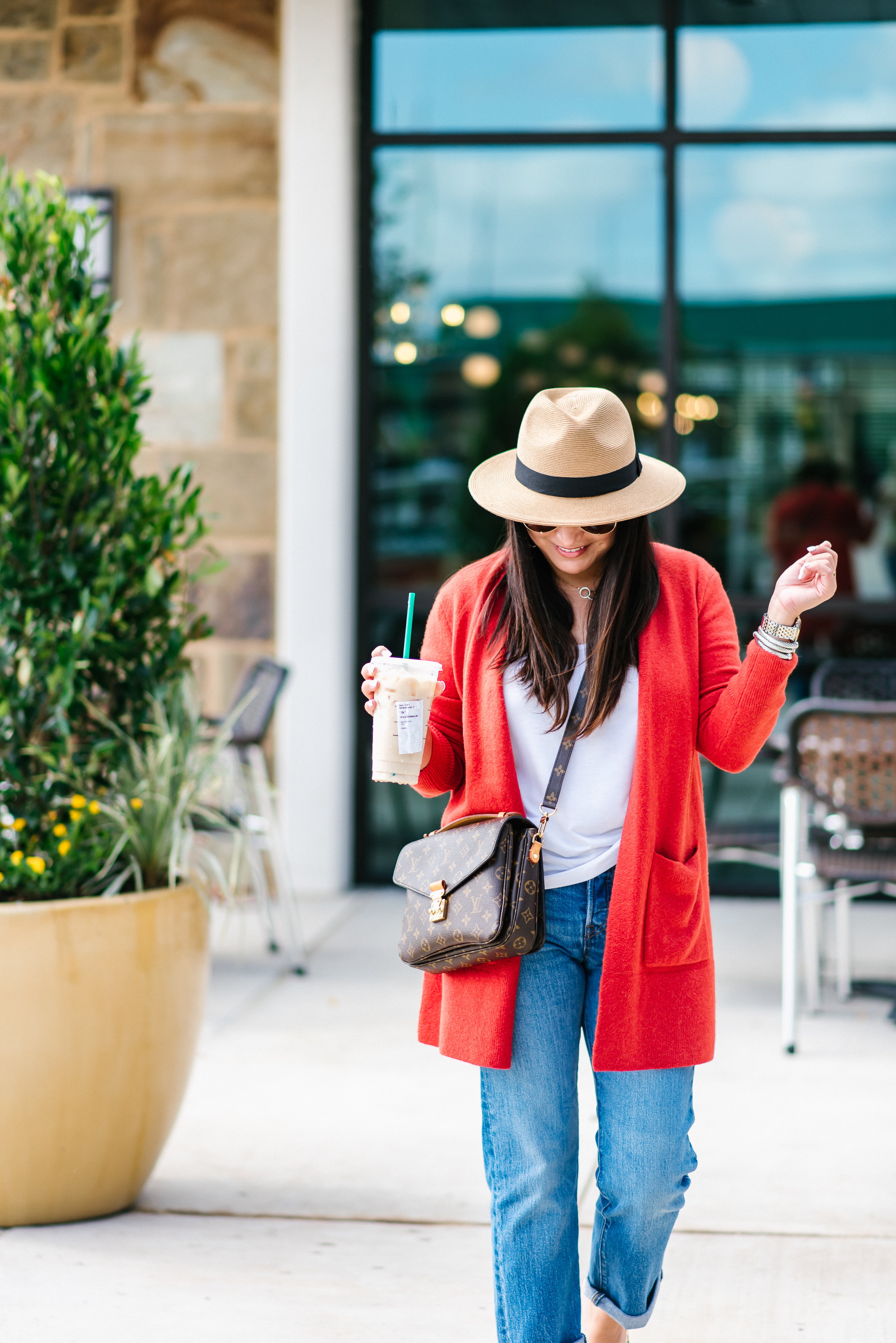 Who else is so over this heat?! I am!! I’m in fall mode and seriously have found the best fall must haves. This supersoft cardigan being one of them. It’s one of my favorite purchases for the upcoming season and it comes in a striped version here. I grabbed that one too of course. I love how simple and relaxed this outfit is. The hat just adds a little something extra don’t you think? I am just slightly obsessed with this hat, I have it in 3 colors now so, yeah I kind of like it! The quality is amazing and it’s comfortable enough to wear all day.