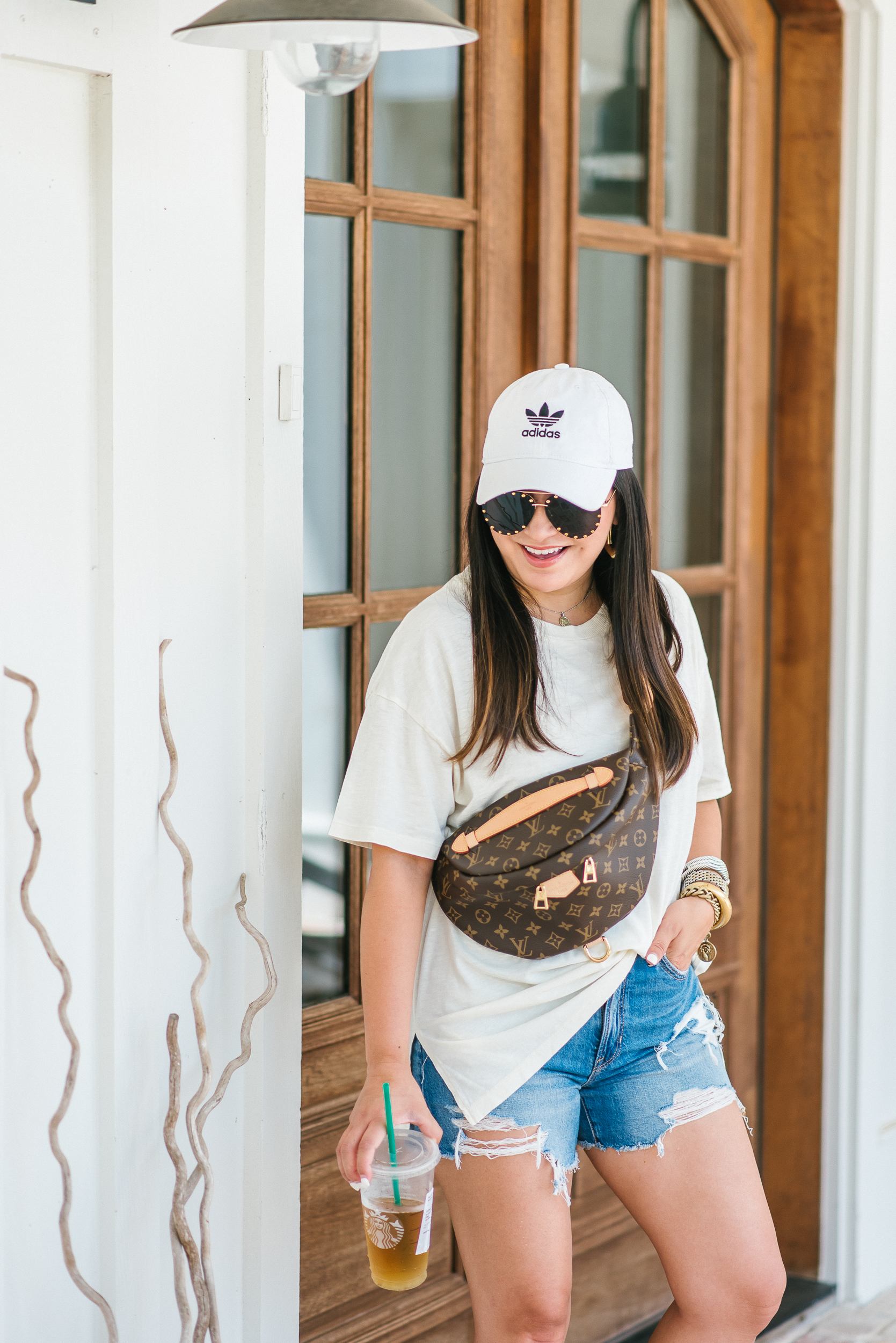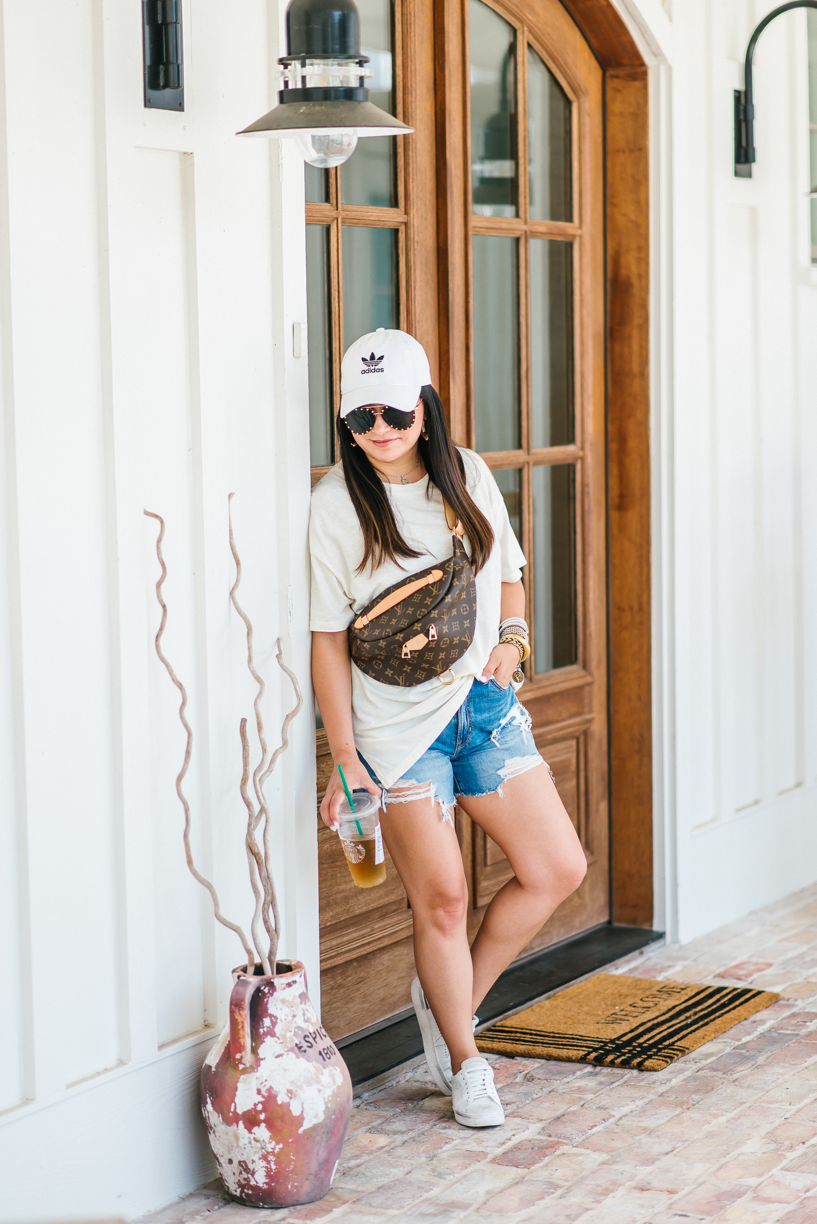 I recently stocked up on these oversized basic tees because they are perfect with bike shorts and leggings. I love the longer sleeves and the effortless casual vibe it gives an outfit. I’m wearing a small, so they run big but that’s how they are supposed to fit. I also love wearing these with sweatpants around the house or for quick errands.