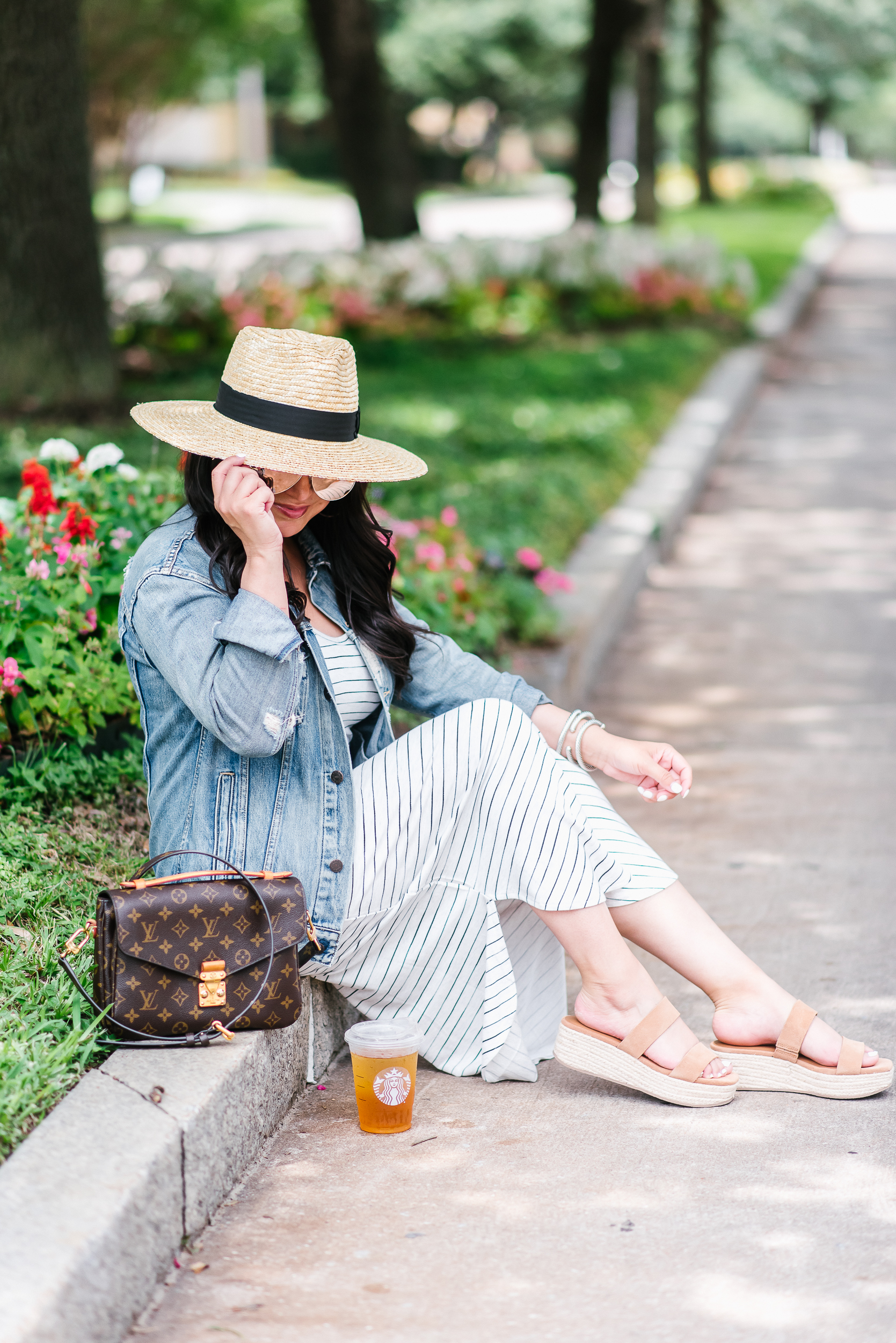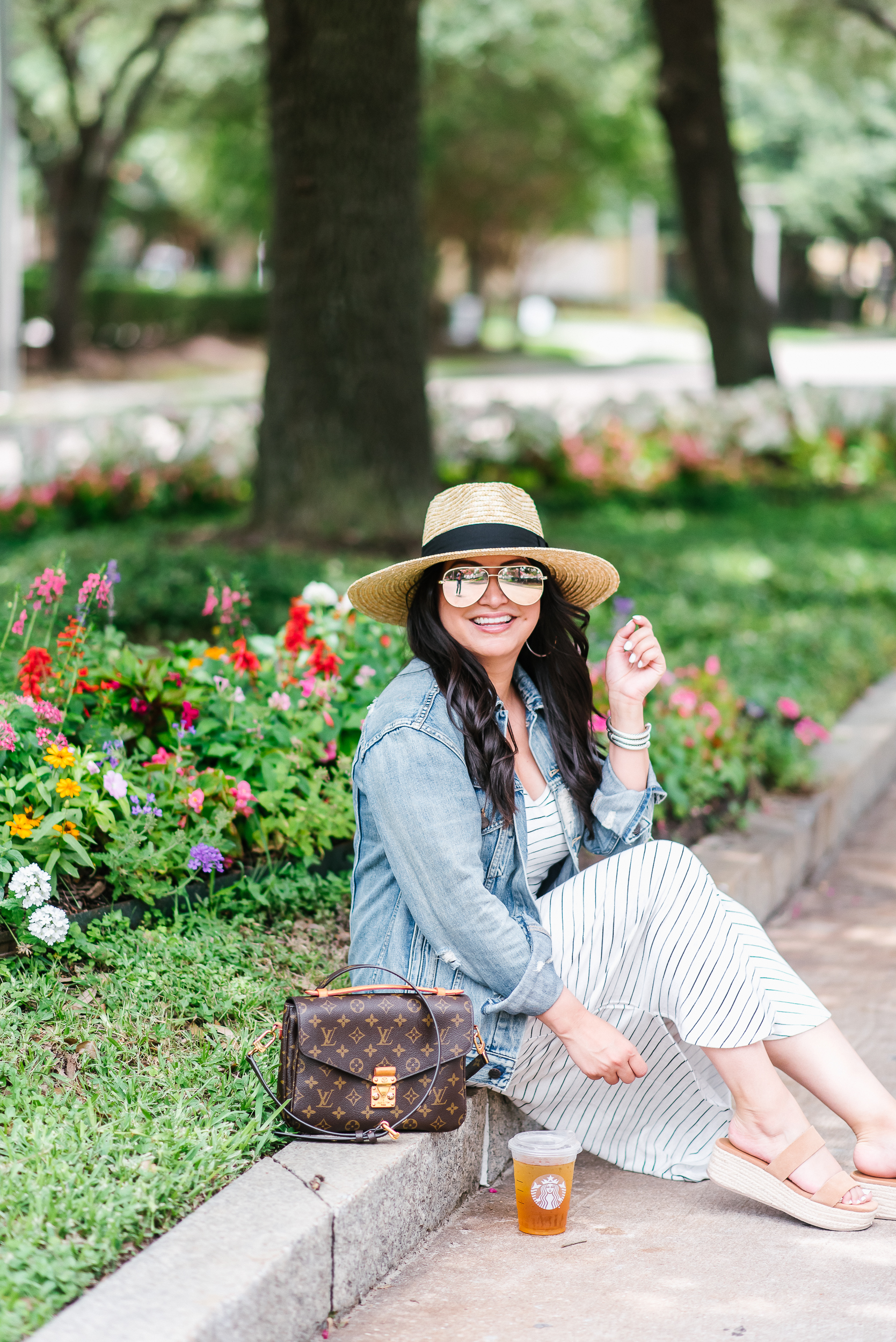 Dress – small | Denim Jacket – tts | Sandals – tts | Hat(like this one too) | Sunglasses(another favorite pair here) | Earrings(love these too) | Bracelets(affordable option here) | Handbag(affordable option here)
