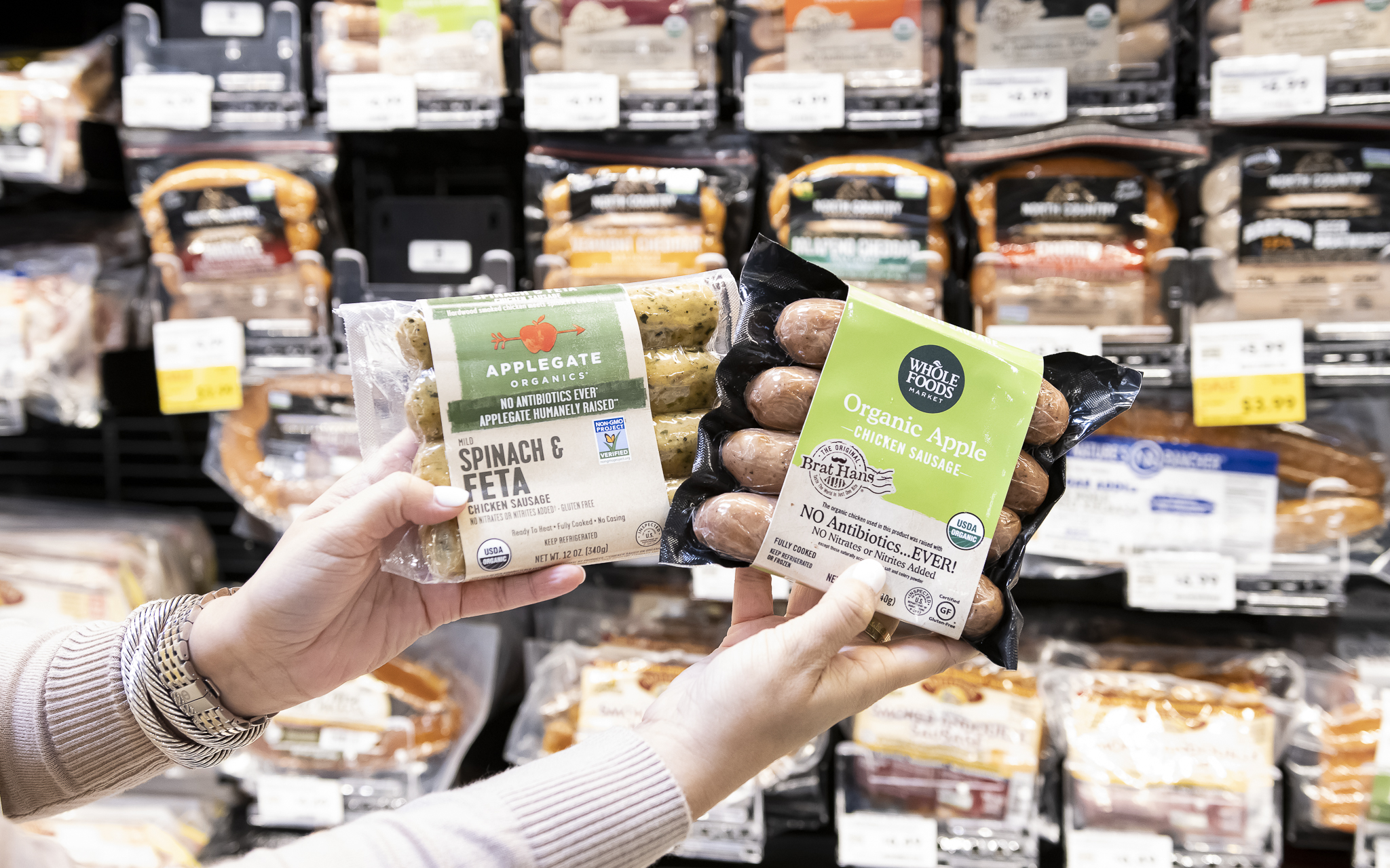 I eat chicken sausage all the time! I love both of the brands I showed in the photos above! They are both free of antibiotics and they don’t have or add in nitrates. It is such a good alternative if you are trying to cut back on red meat.