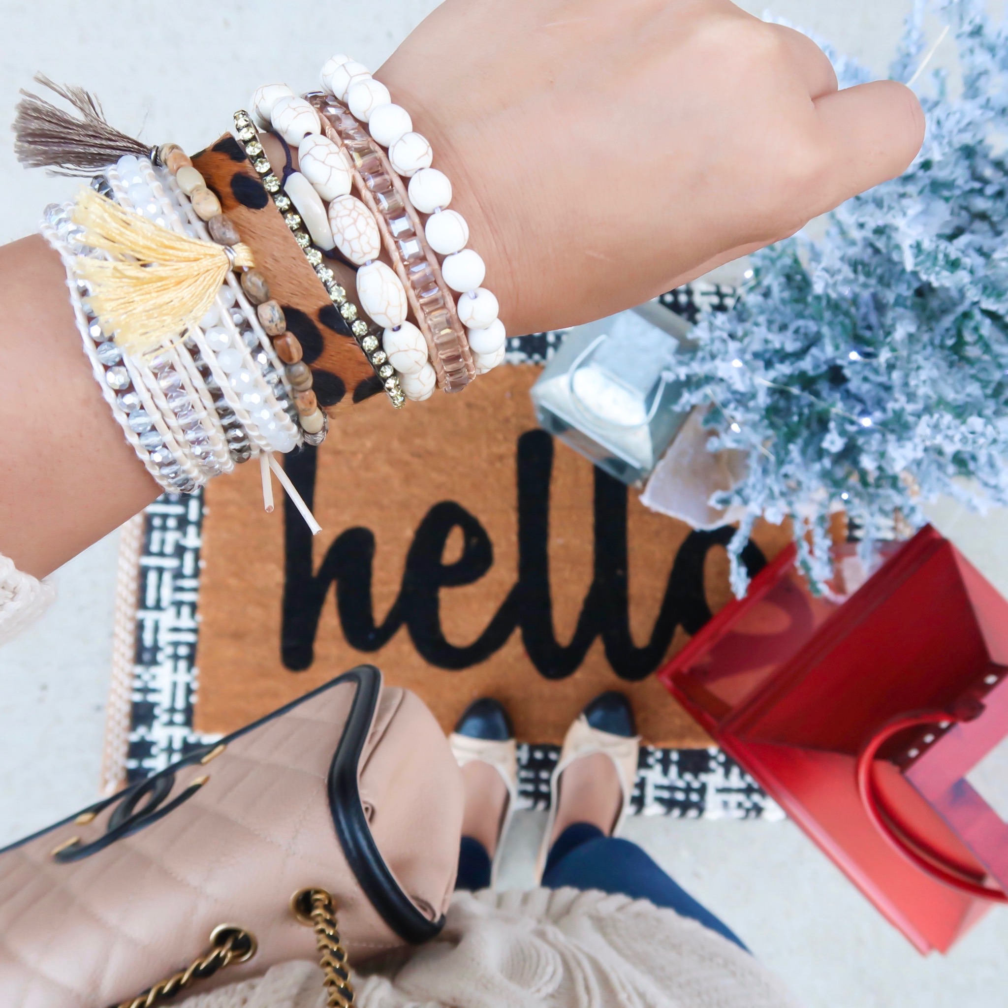 Happy Monday! I hope y’all had an amazing Thanksgiving with family and friends. Ours was amazing. It was just the time I needed. With that said, I am so glad to be back to my regular posts on the blog and today I am sharing some of my favorite bracelets. One of my favorite ways to accessories is with a stack. One of my favorite brands to stack with is Victoria Emerson. They’ve done a great job creating fun stackable bracelets at a great price, but right now they are having a HUGE Cyber Monday Sale. EVERYTHING is 50% OFF!! I actually stocked up on a few for teacher gifts. At that price, I can get them for all the boys teachers for under $100. My current favorite is this boho wrap and this double wrap. I also LOVE this classic wrap. Look at that Christmas list, who do you have left and make sure to hit up the Victoria Emerson Cyber Monday sale!